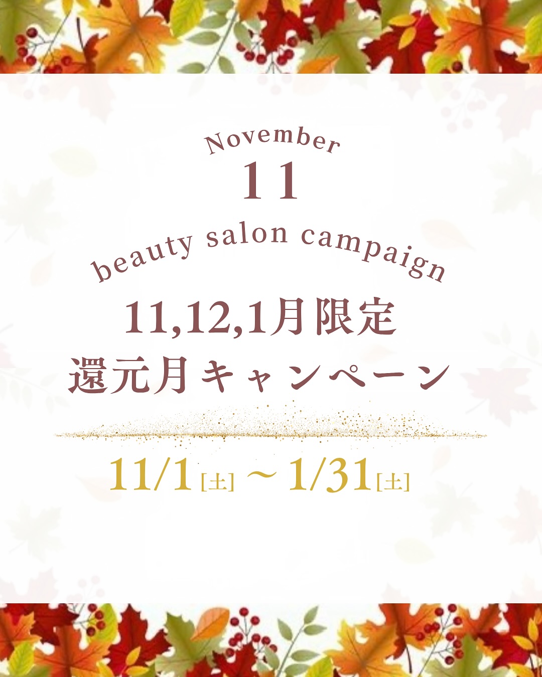 日々の感謝を込めて、大変お得な11月のキャンペーンのお知らせです。